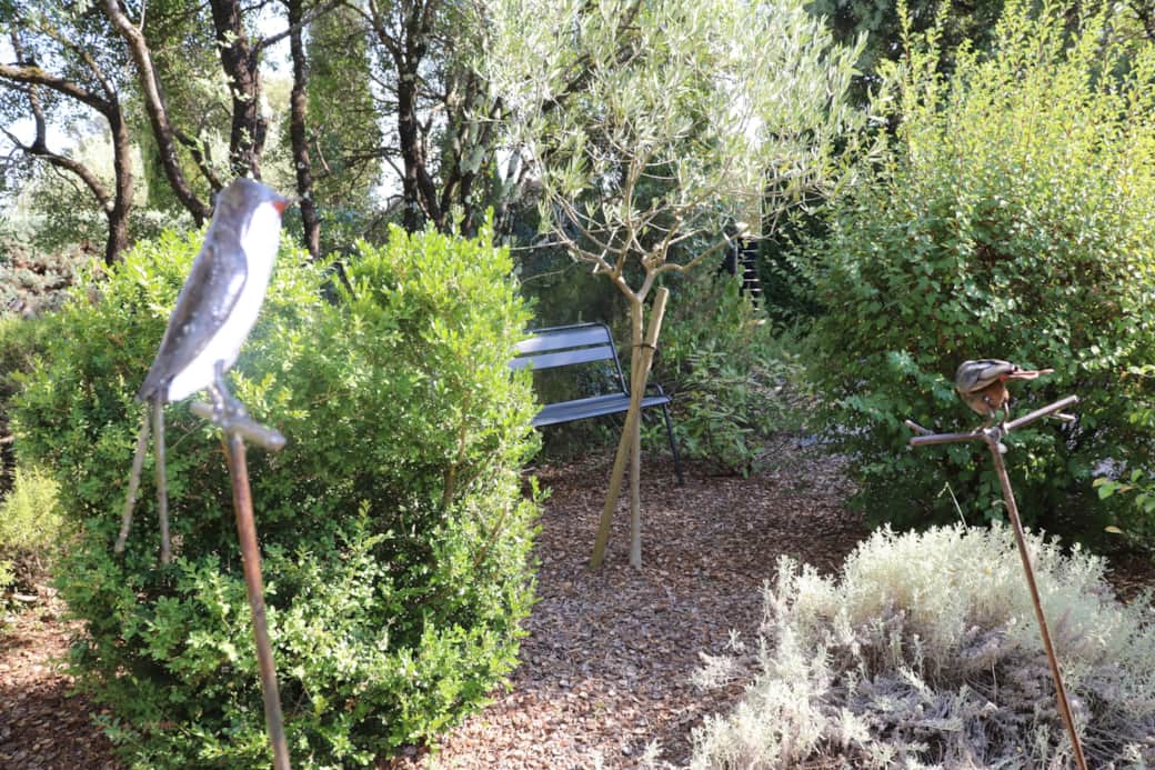 Mediterraner Garten: Vollständige Metamorphose des 1500 m² großen Parks mit Anpflanzung von Zypressen aus Florenz, Olivenbäumen, mexikanischen Orangenbäumen, Oleander, Pittosporum usw., alles unter automatischer Tröpfchenbewässerung; und Mulch aus Pfirsich- und Aprikosenkernen.
